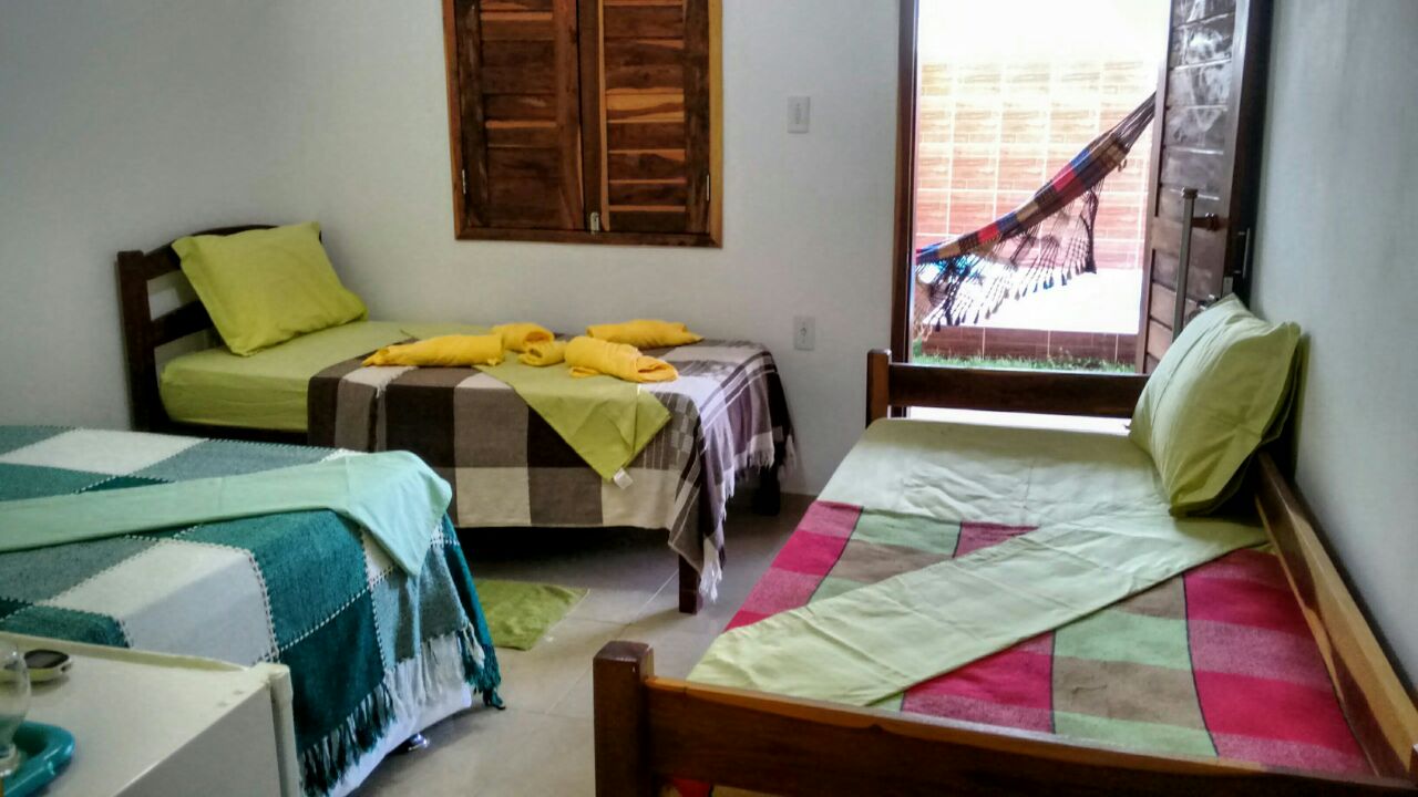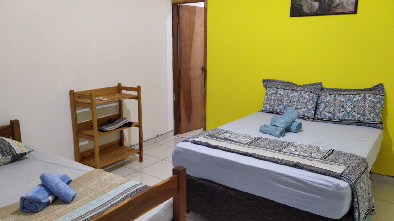 2 Quádruplos: 1 cama de cama de casal + 2 de solteiro, banheiro privativo, ar condicionado split, frigobar, wifi.