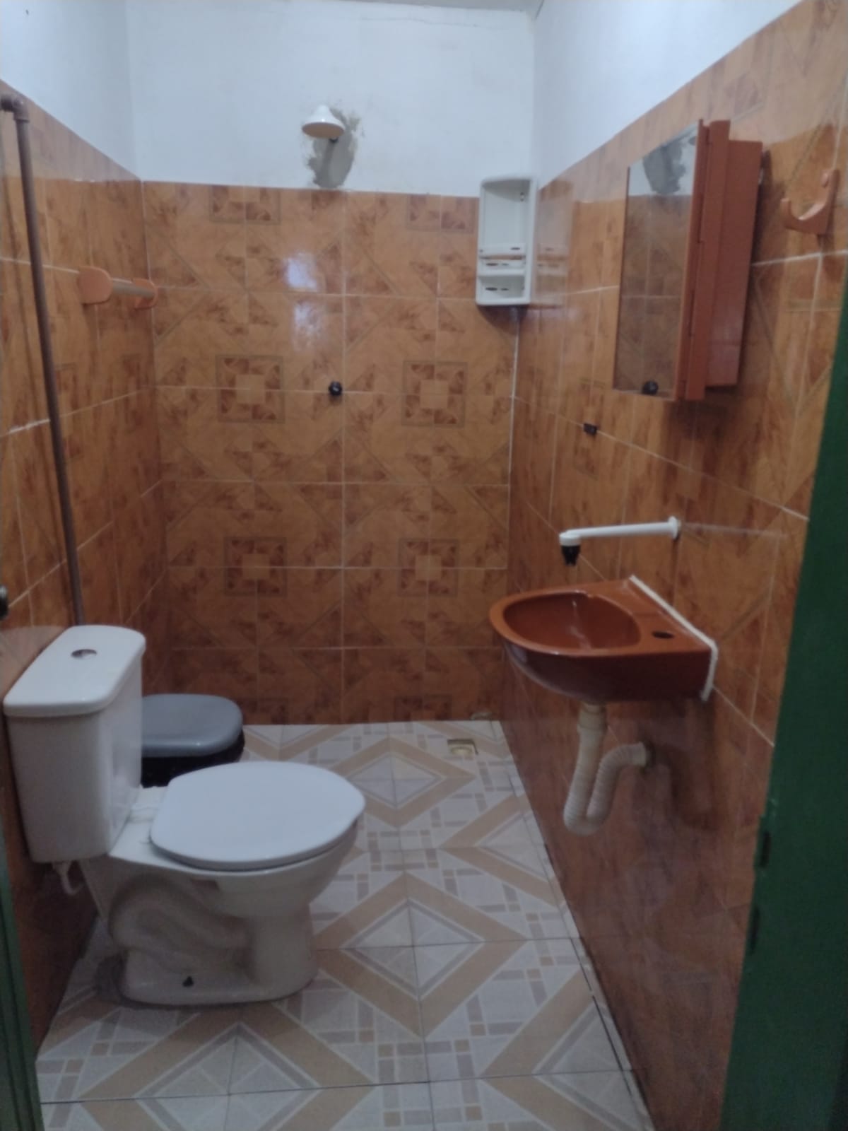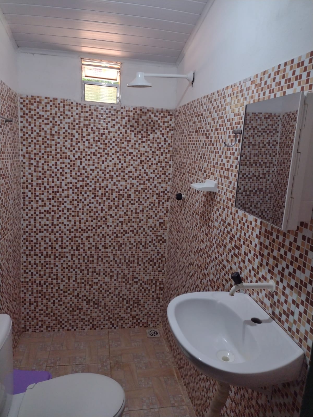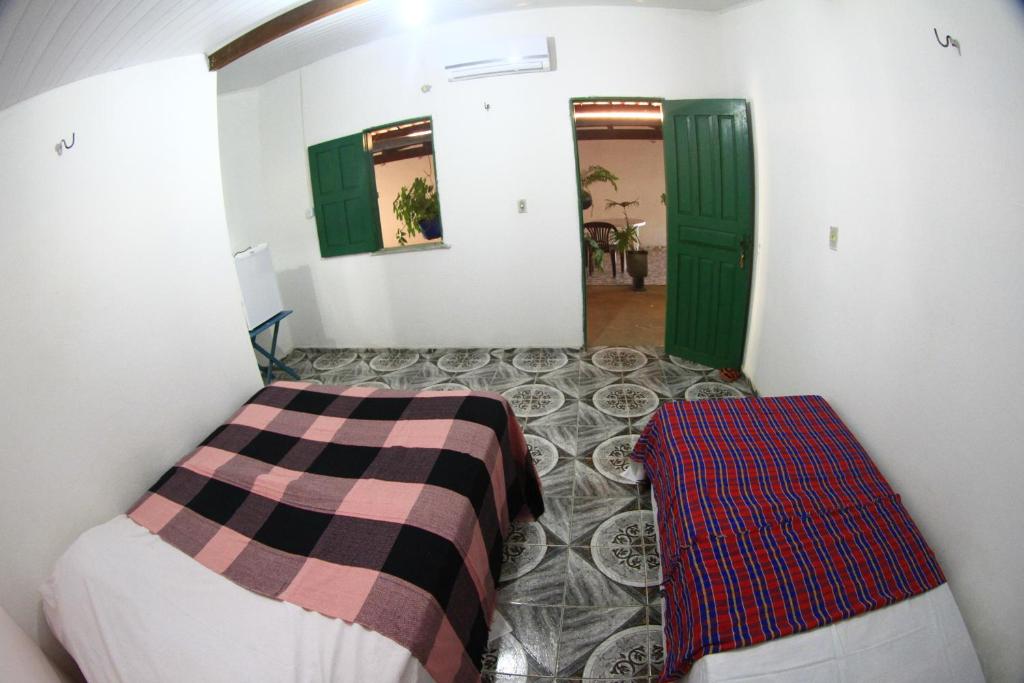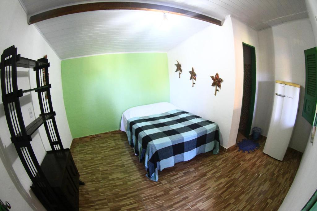 1 Quarto: Duas Camas de casal, ar condicionado, banheiro, geladeira, espelho, armador de rede.