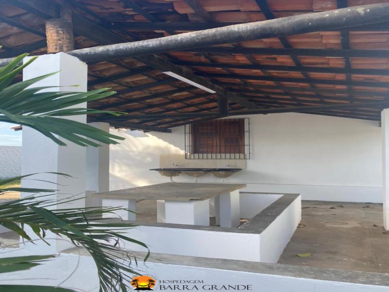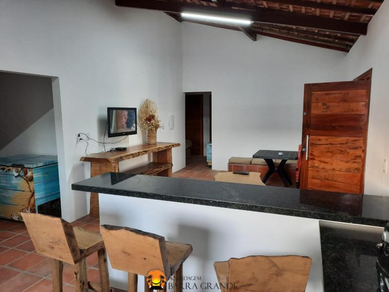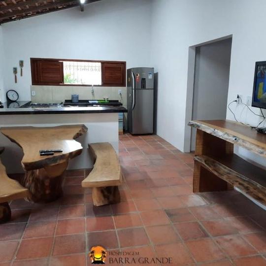 01 Cozinha equipada. Área externa: Varanda em forma de “U”. Pequena churrasqueira (móvel), mesas e cadeiras fixa. Banheiro externo, pós banho de mar.