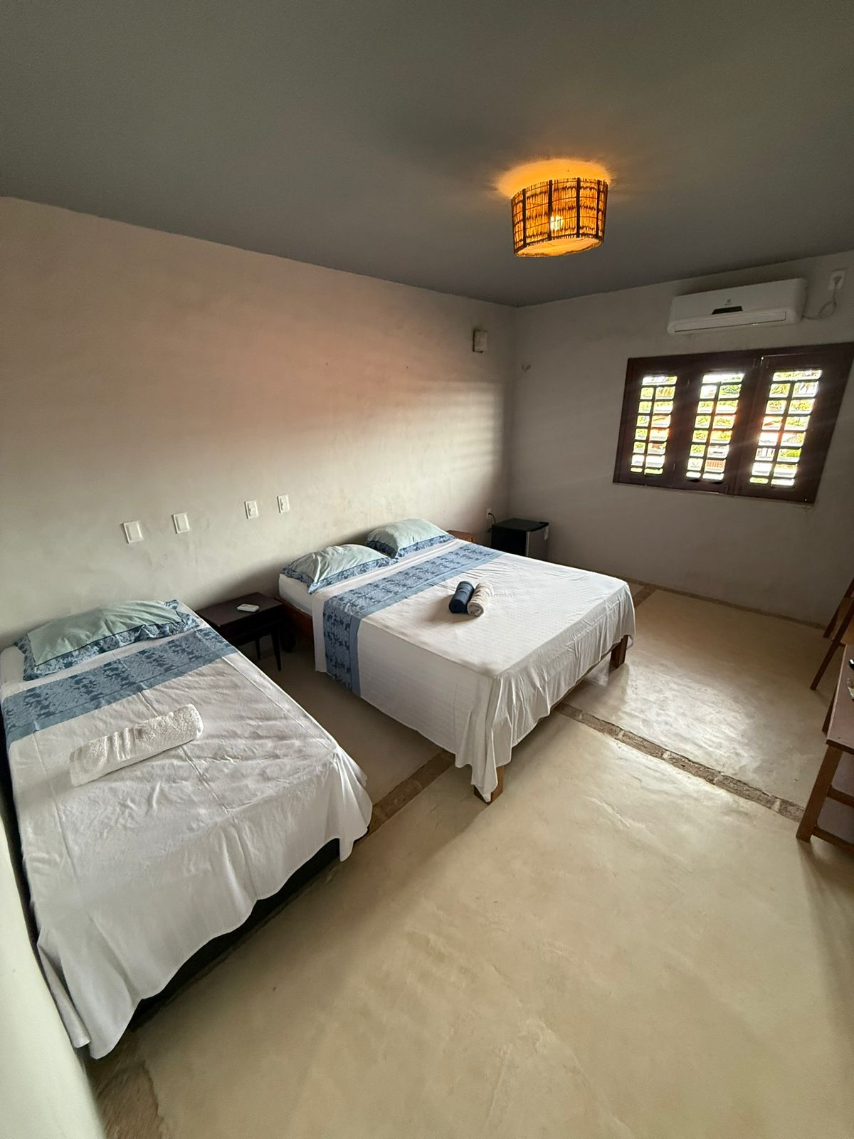 Quarto Triplo: 01 cama de casal queen + 01 cama solteiro