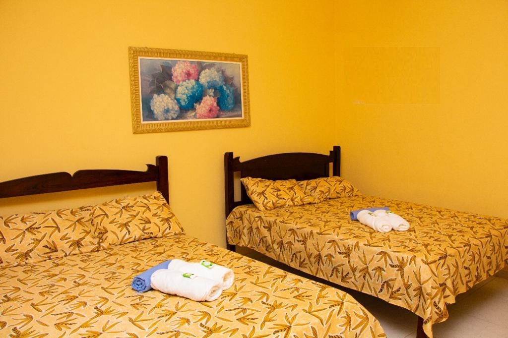 Quarto triplo: uma cama de casal, uma cama de solteiro, ar condicionado split, frigobar, wifi  e banheiro privativo;