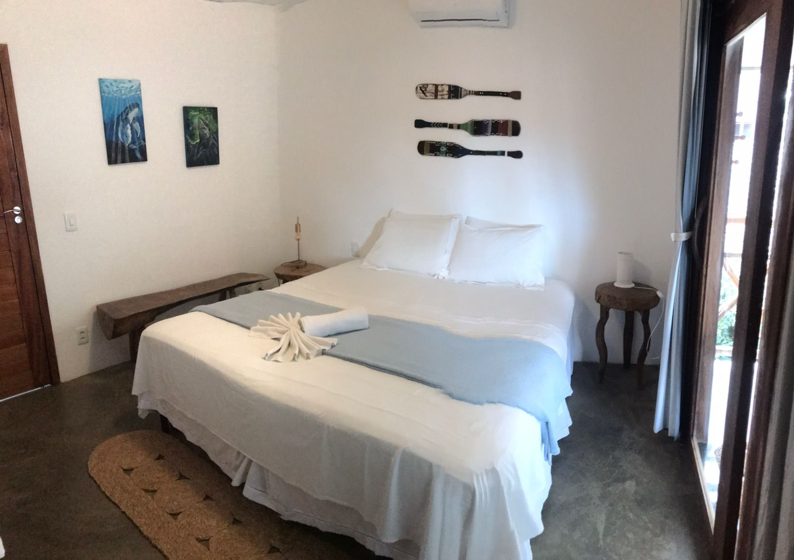 2 – Quartos duplo: uma cama de casal, roupa de cama, ar condicionado, frigobar e banheiro privativo;