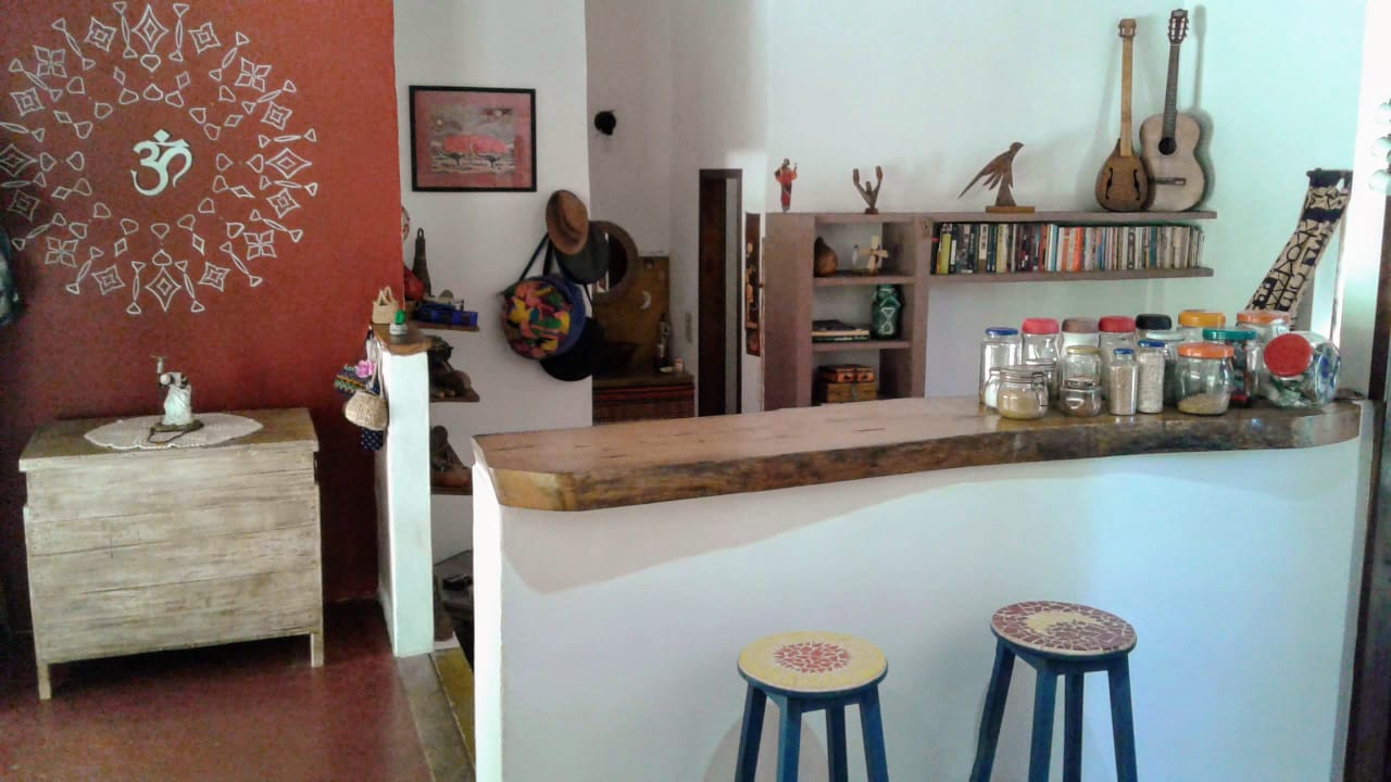 Casa CAJARINA : Quarto de casal/suíte + 1 sala + 1 banheiro social+ 1 cozinha +1 lavanderia + TV + cozinha completa + 2 varandas.