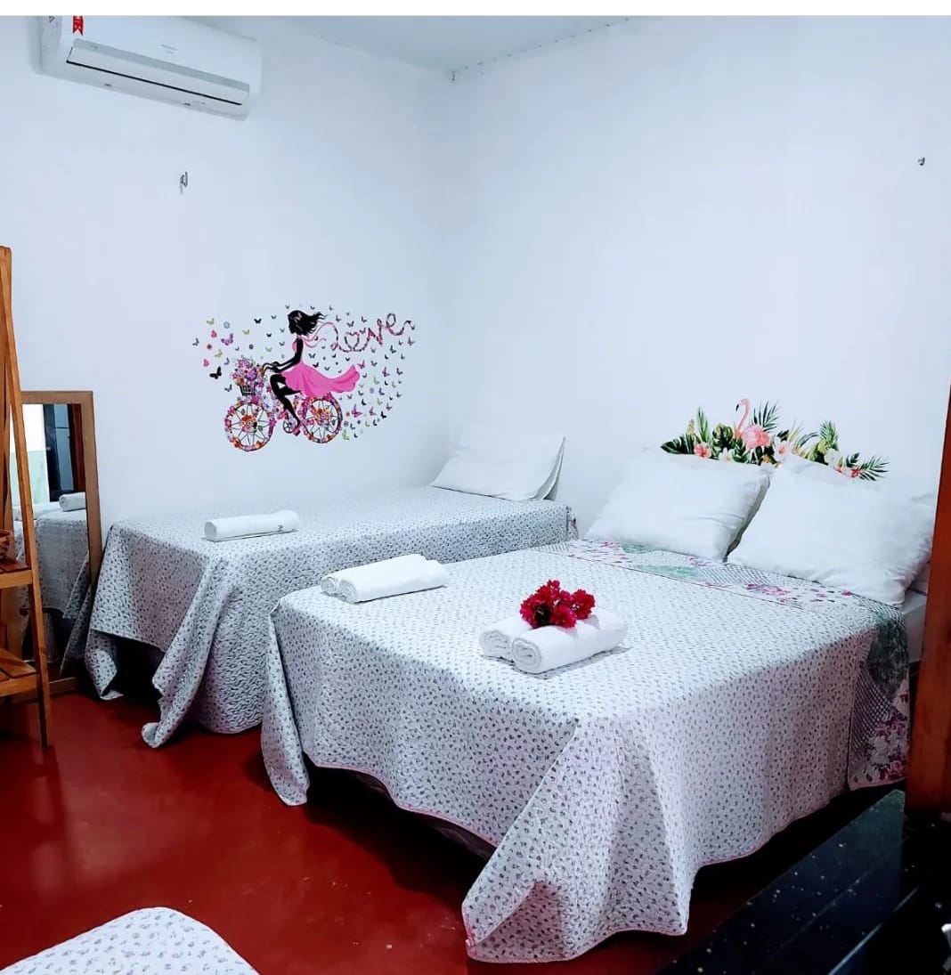 Suíte Triplo: 1 cama de casal, armador de rede, roupa de cama, ar condicionado, banheiro privativo e wifi;