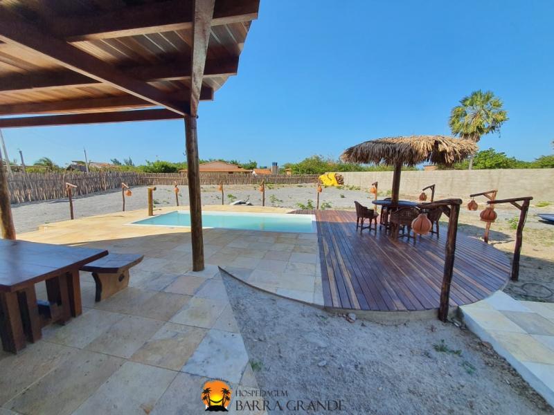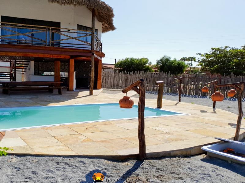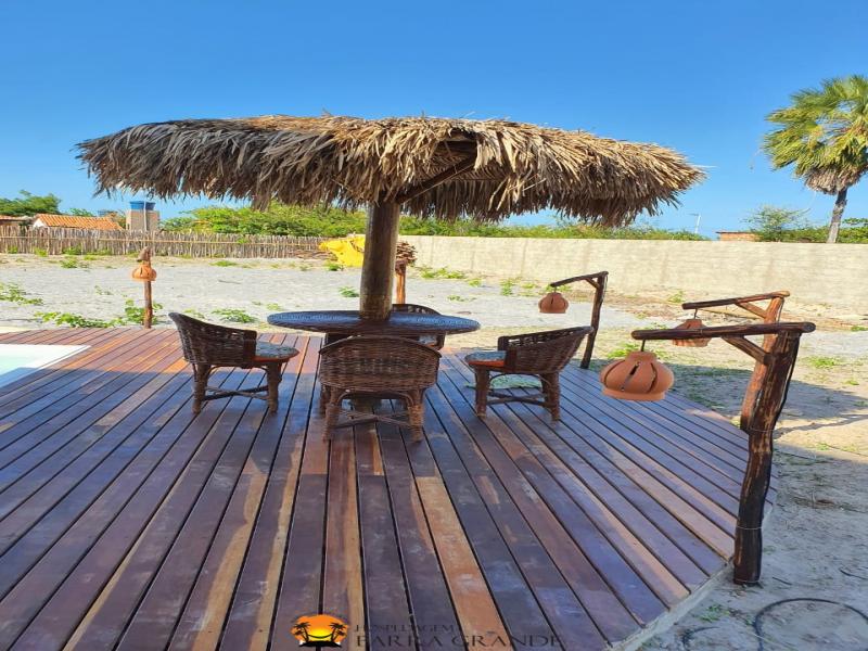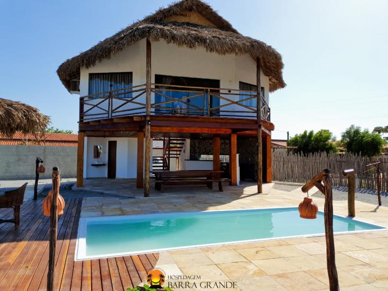 Amplo chalé para até 6 pessoas, localizado em Barra Grande, projetado pelo arquiteto Gustavo Aguiar. Possui piscina ao ar livre, sacada em madeira, extenso estacionamento interno para hóspedes. No piso inferior conta com uma área gourmet e no piso superior há uma ampla suíte para até 6 pessoas. Possui cobertura em palha, proporcionando maior conforto térmico e ventilação natural. Uma ótima hospedagem para agradável estadia em Barra Grande – PI