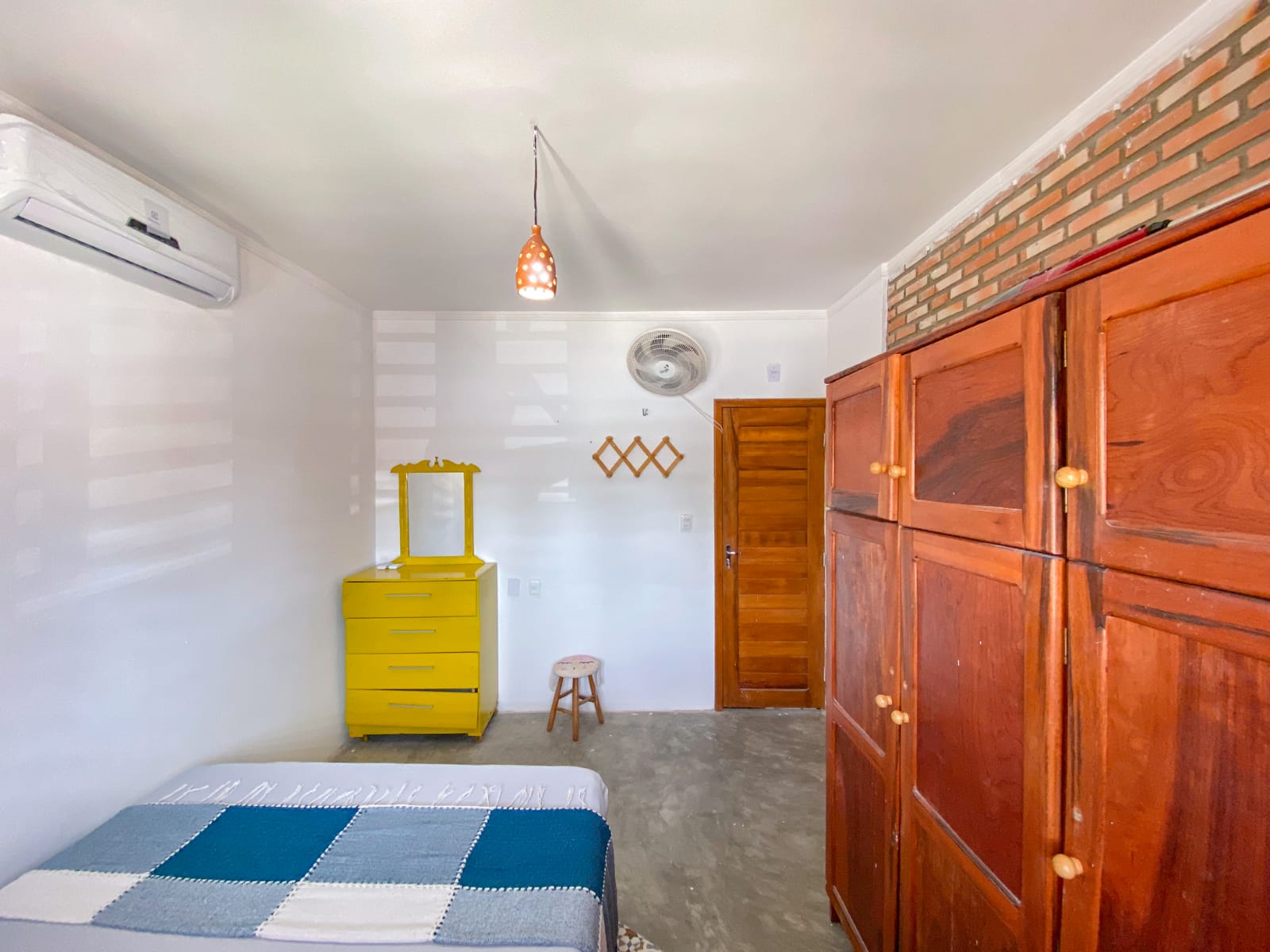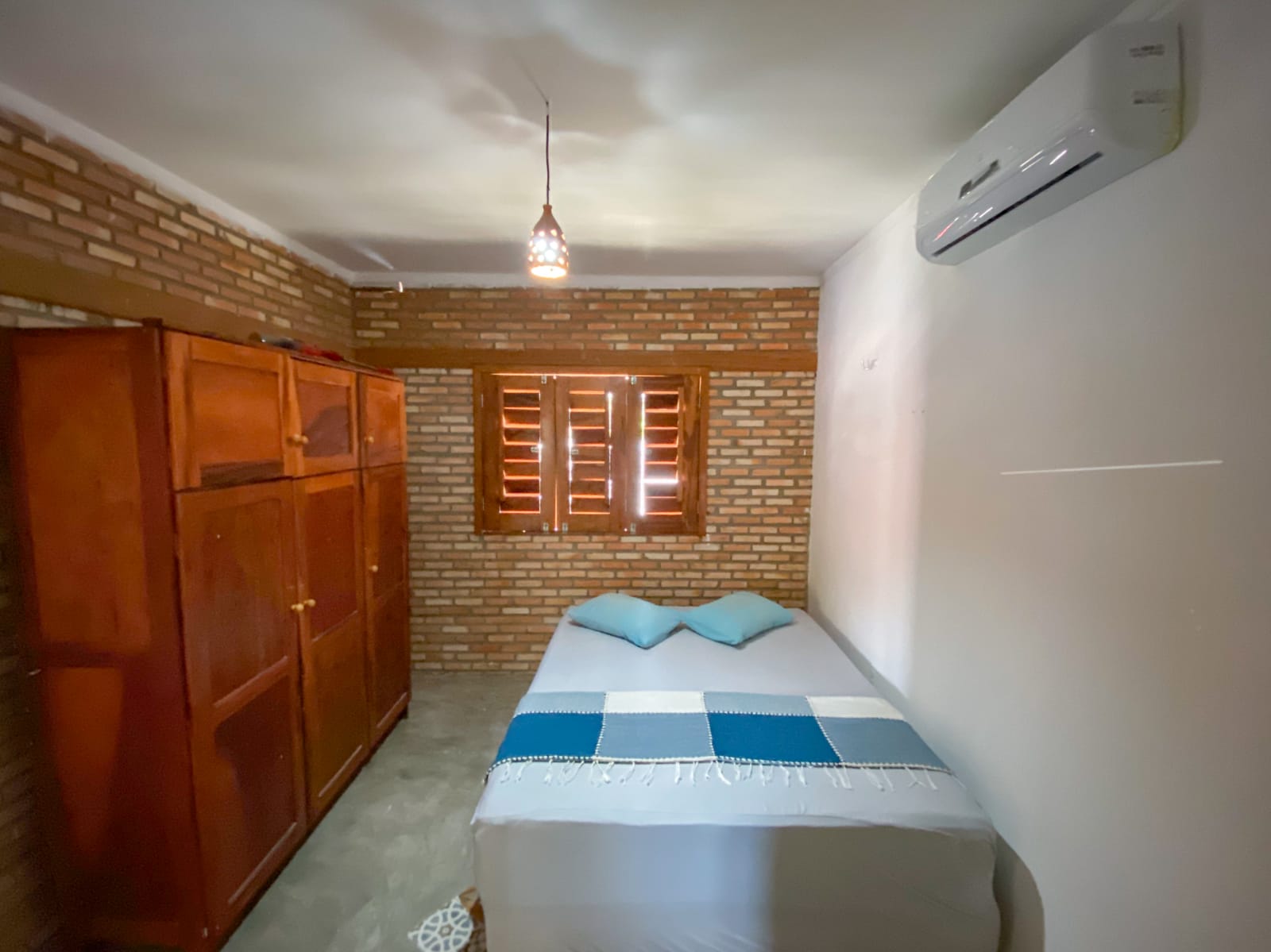 1 quarto com uma cama de casal e uma beliche + ar-condicionado;