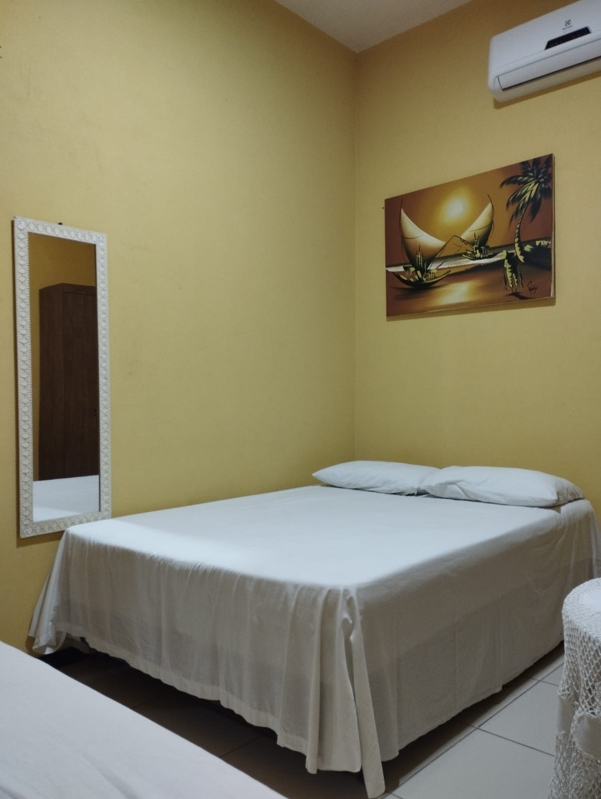 2 Quartos: cada um com uma cama de casal + cama solteiro + dois móveis para guardar pertences