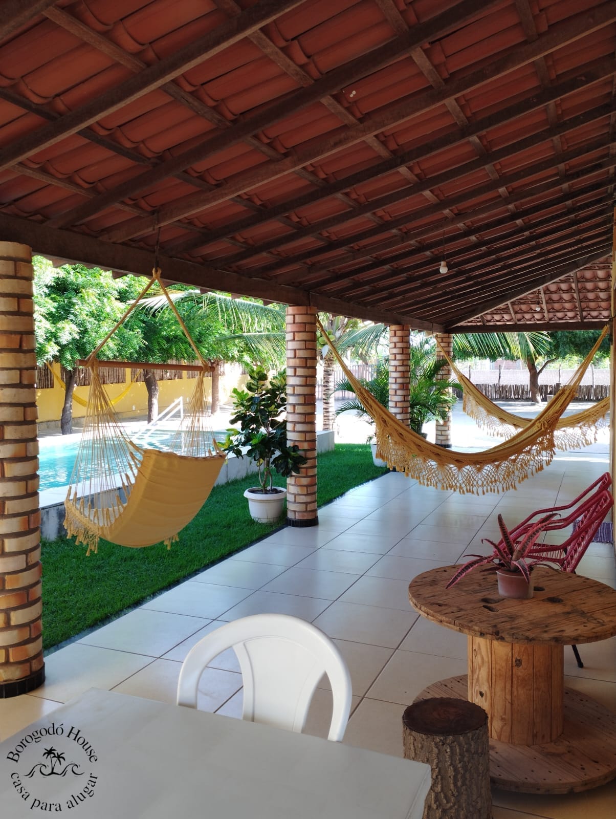 Configuração: Em camas cabem 6 pessoas e em redes 9 pessoas.