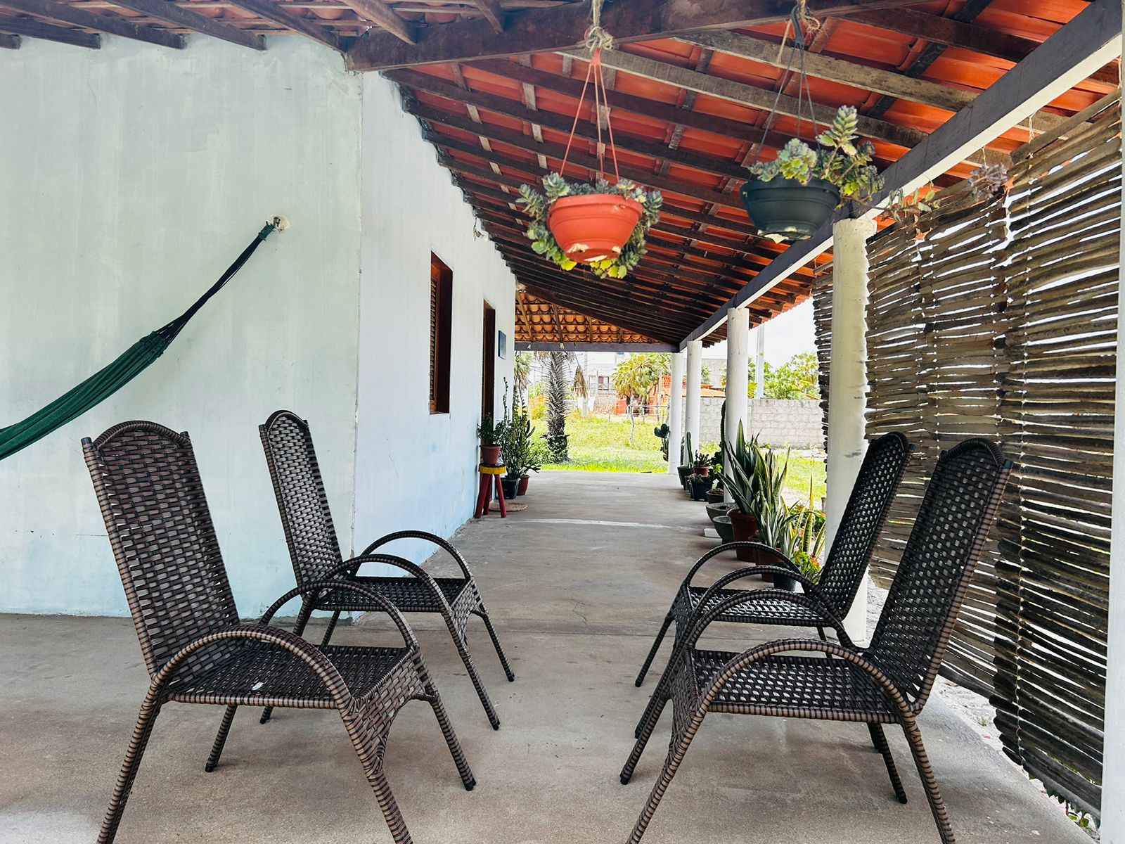 Casa Avarandada para ate 10 pessoas (6 pessoas em camas restante em redes), localiza-se a 20 minutos da praia.