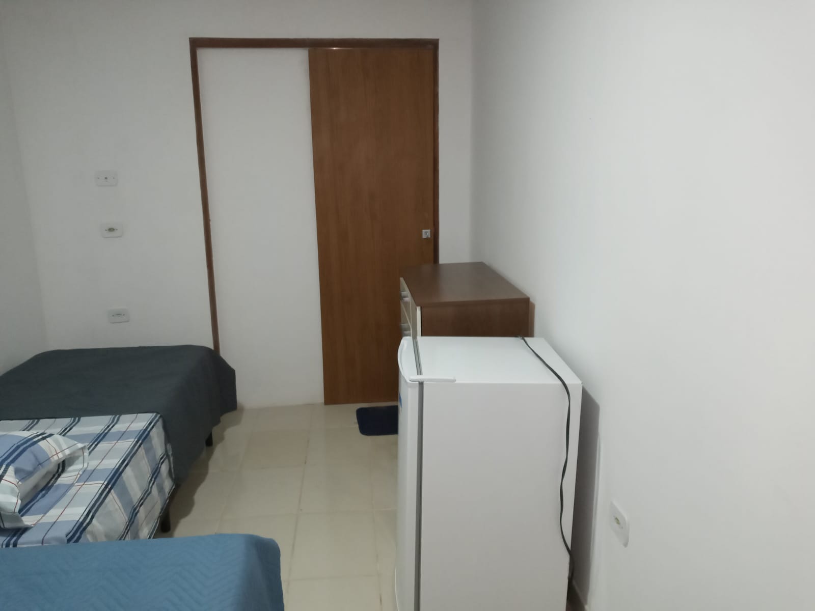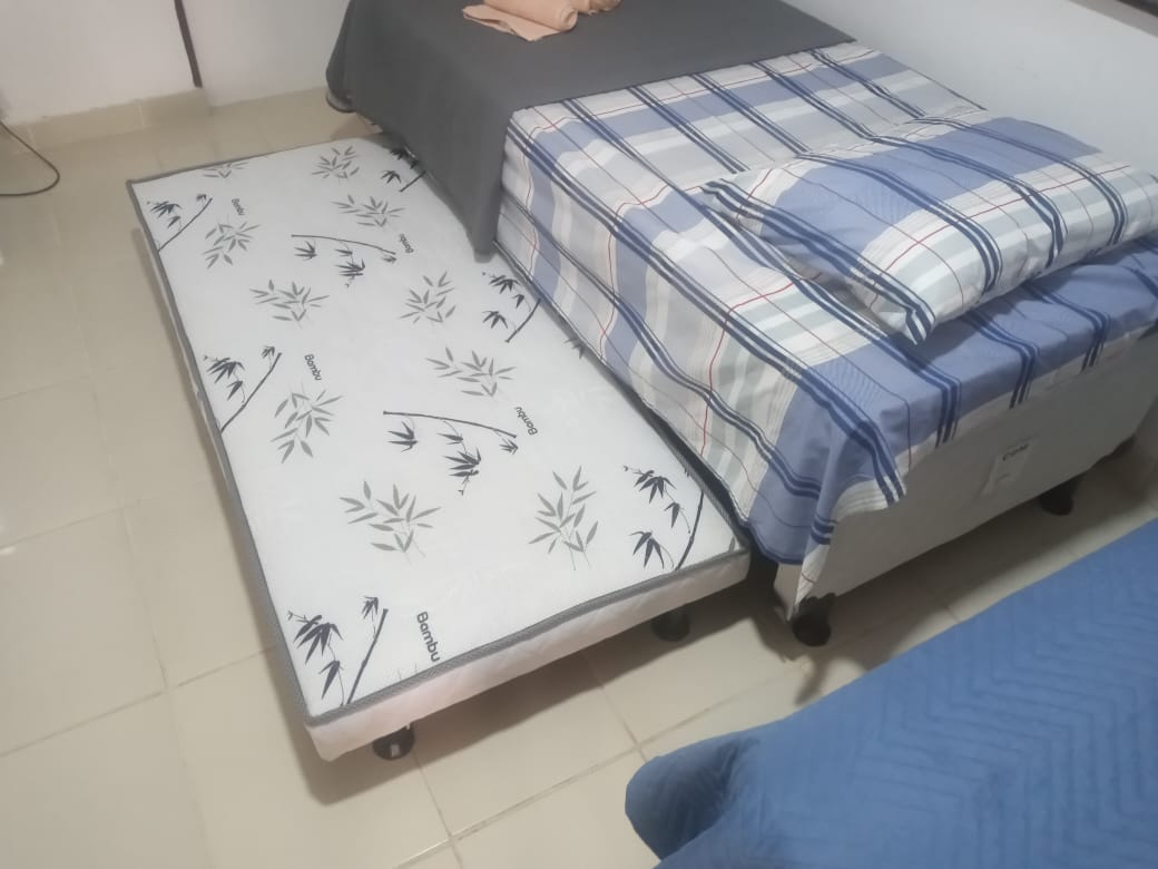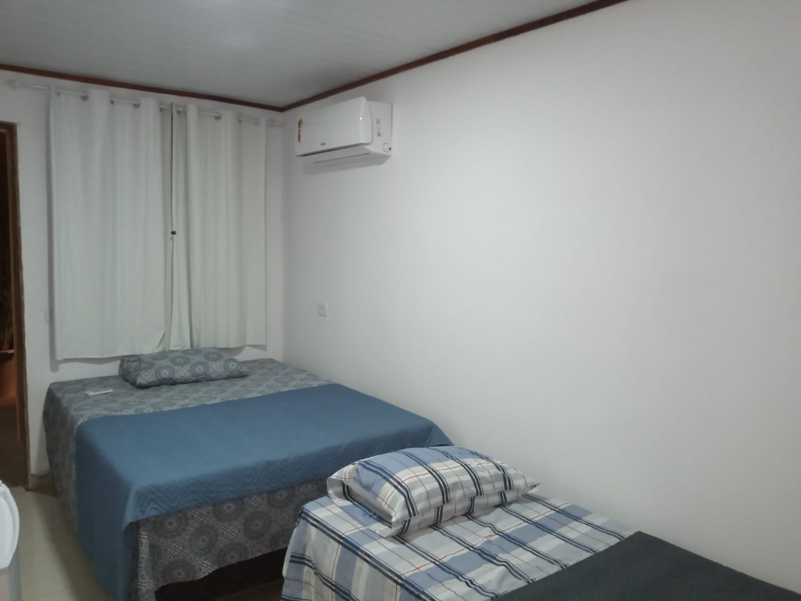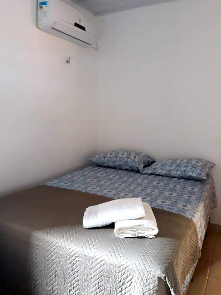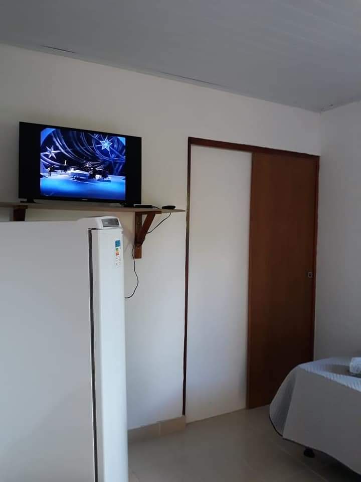 Chalé 1 para 4 pessoas: 1 Quarto com uma cama de casal e 1 sofá cama para 2 pessoas, TV, ar condicionado, geladeira, armador de rede, wi-fi e 1 banheiro com chuveiro elétrico;