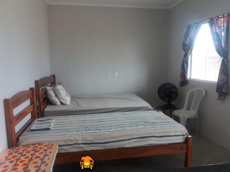 1 Quarto com uma cama de casal, uma de solteiro e 1 armador de rede;