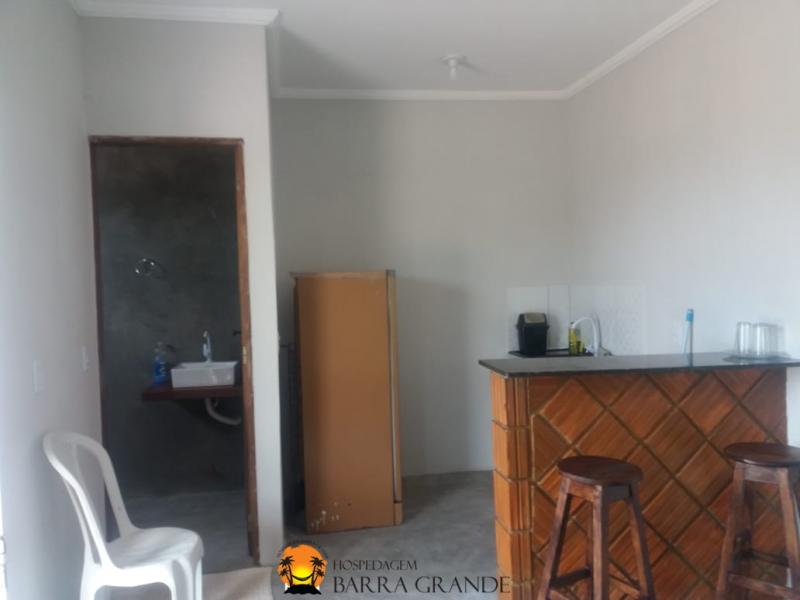 1 Mini cozinha com geladeira e uma pia de lavar louças;