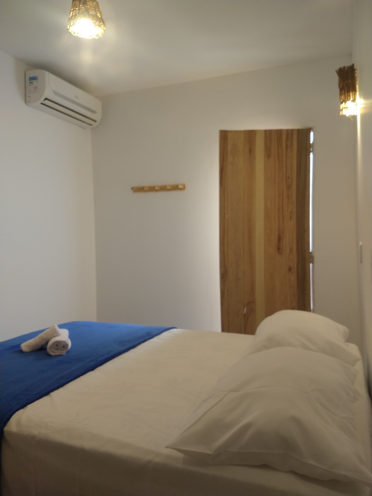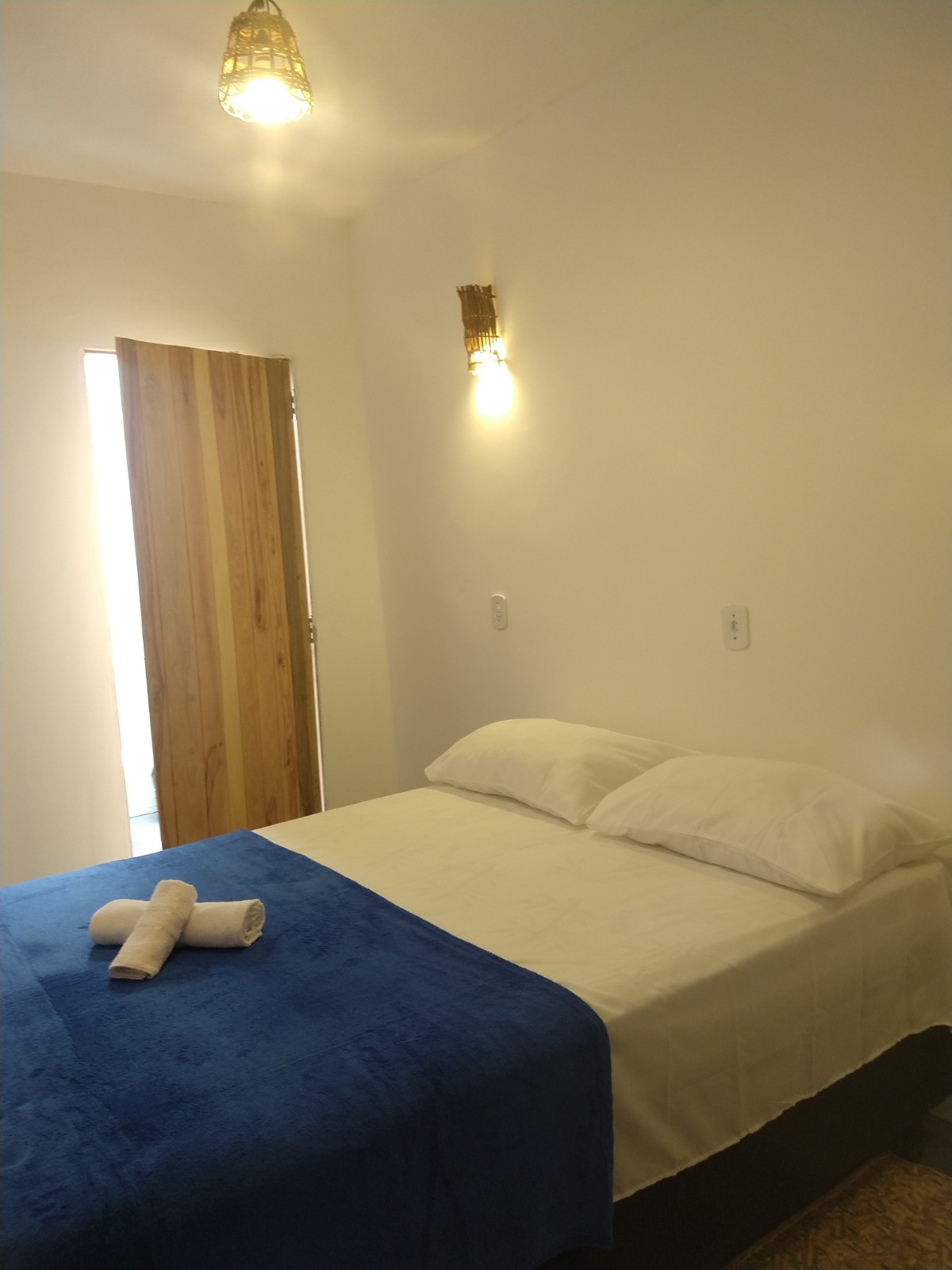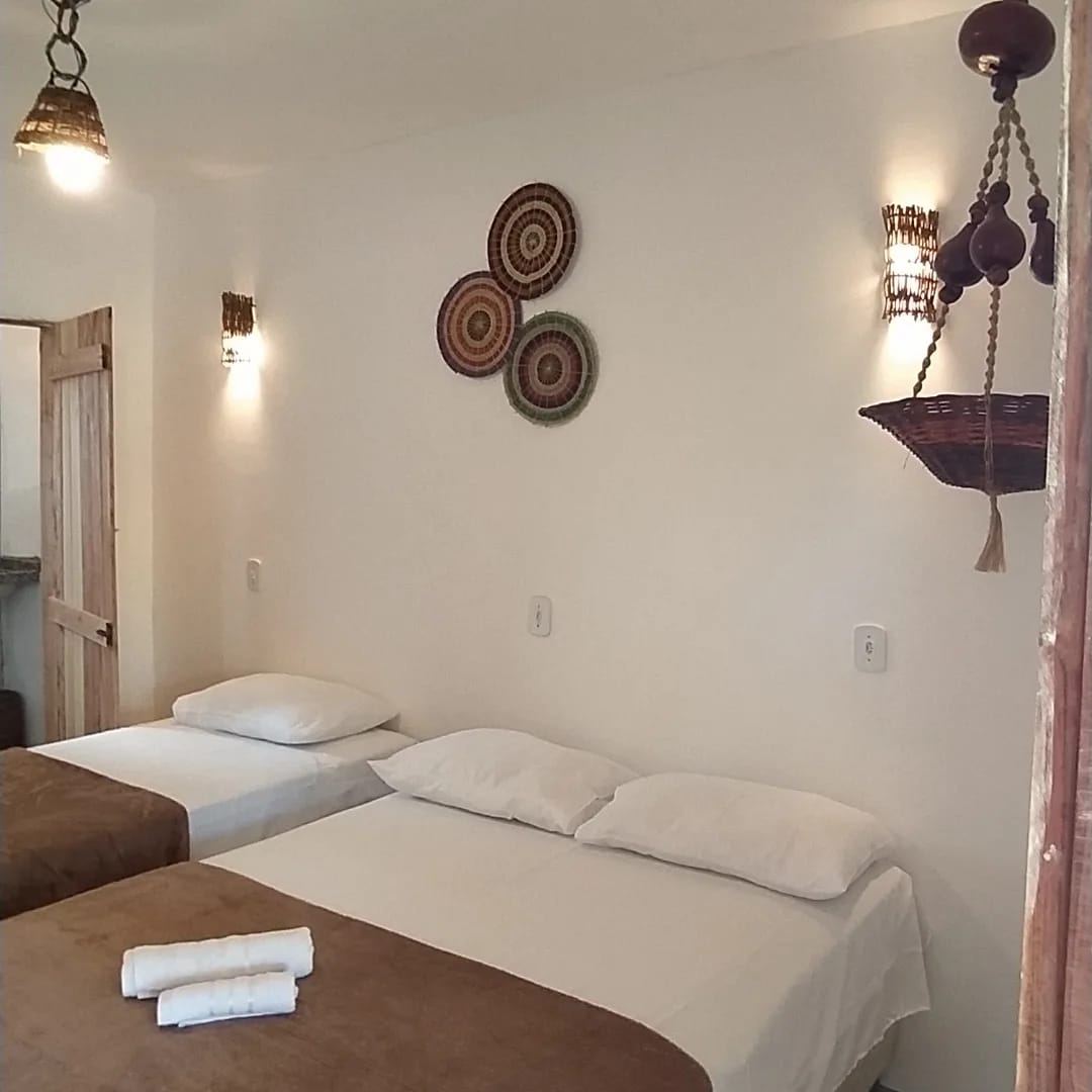 Chalé 4 – Uma cama de casal + uma cama de solteiro, ar condicionado, banheiro com ducha quente.
