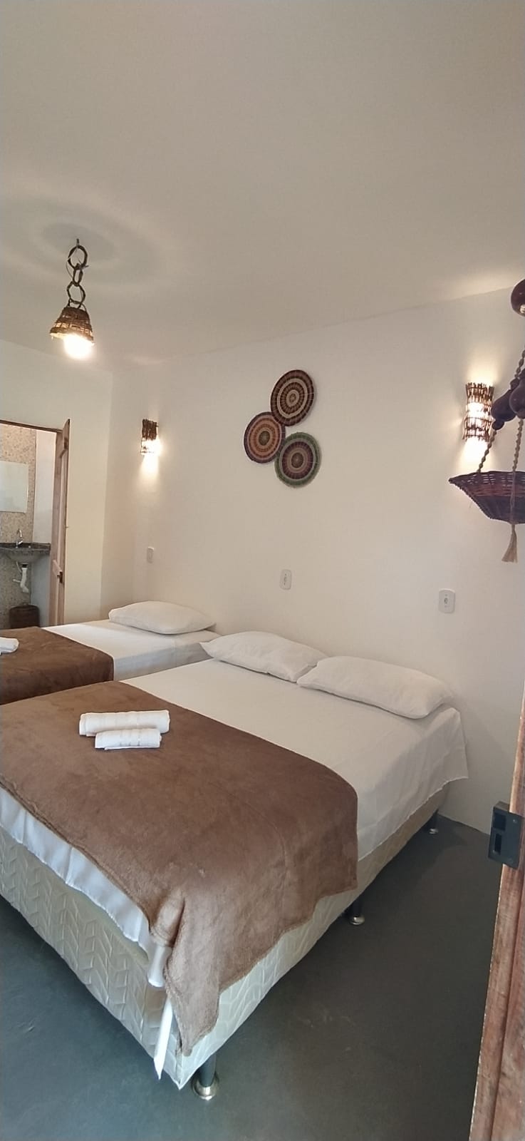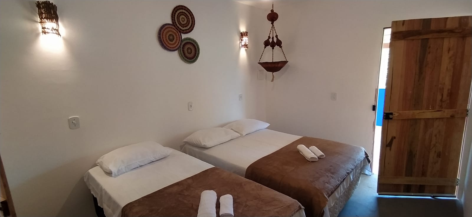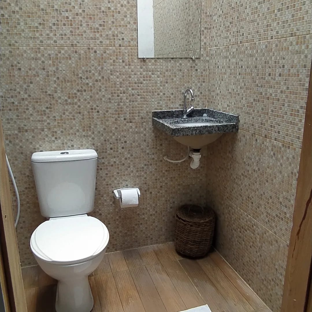 Chalé 4 – Uma cama de casal + uma cama de solteiro, ar condicionado, banheiro com ducha quente.