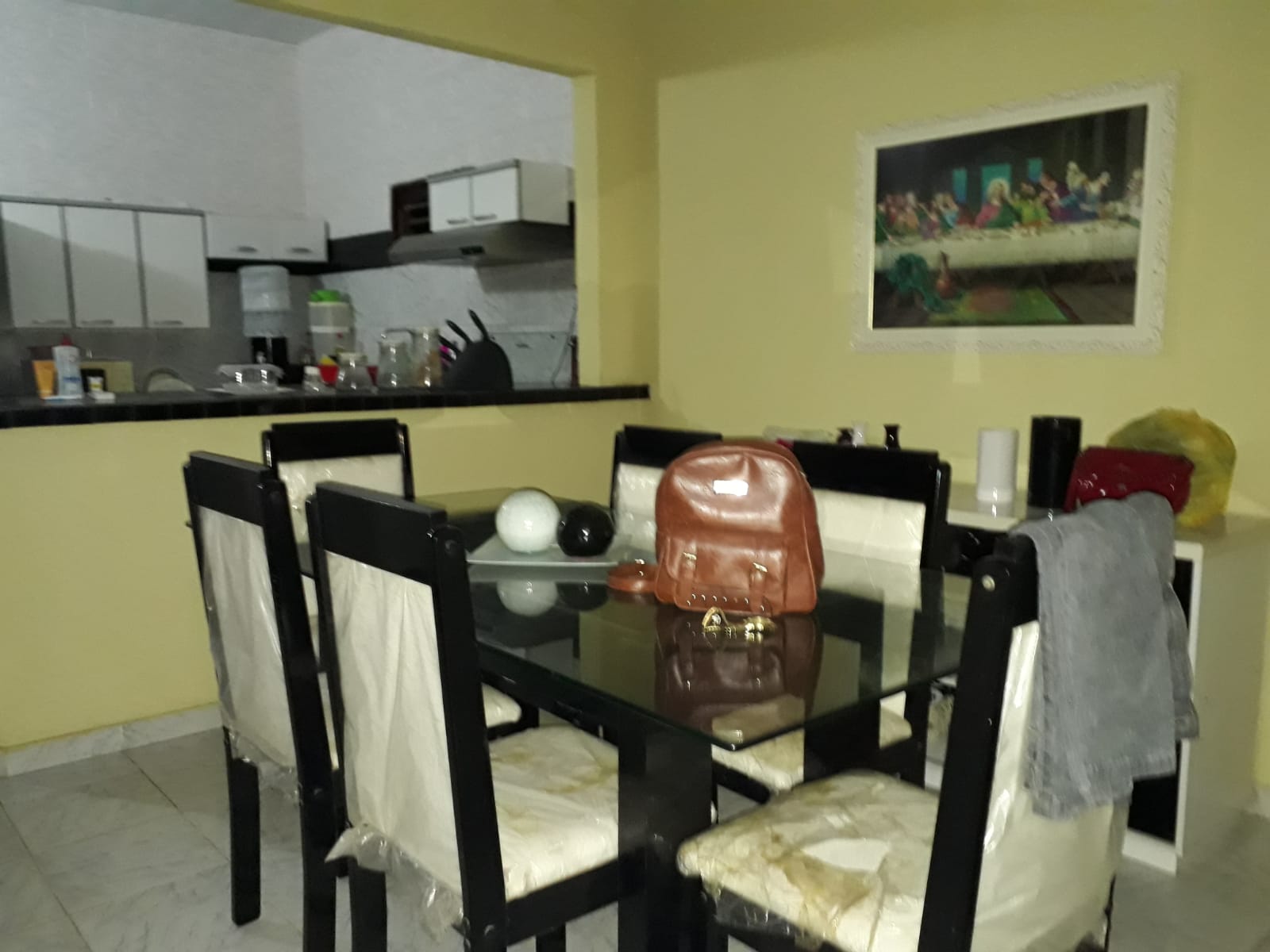 1 sala de jantar: com mesa e cadeiras;
