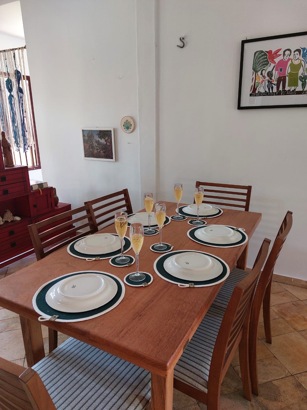 1 sala com TV, mesa para 6 pessoas, dois pares de armadores de rede;