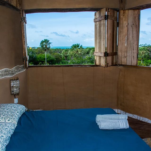 Suíte Semente com varanda e vista lateral para o mar (até 4 pessoas): Diária 2 pessoas: R$220; 3 pessoas R$285; 4 pessoas R$355