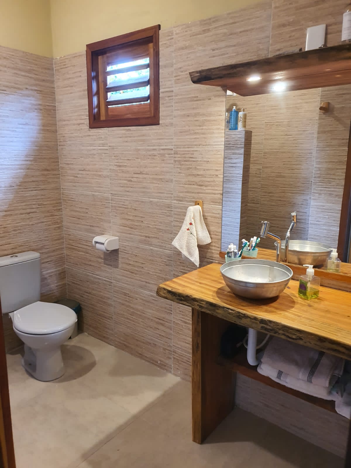 – Uma cama de casal, uma beliche, ar condicionado e wifi;