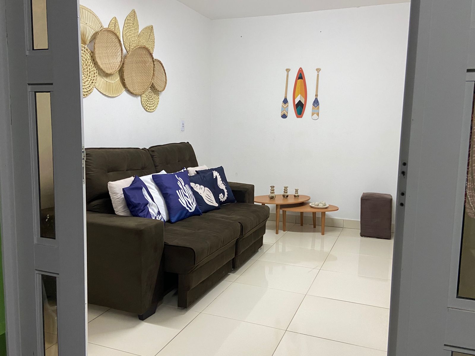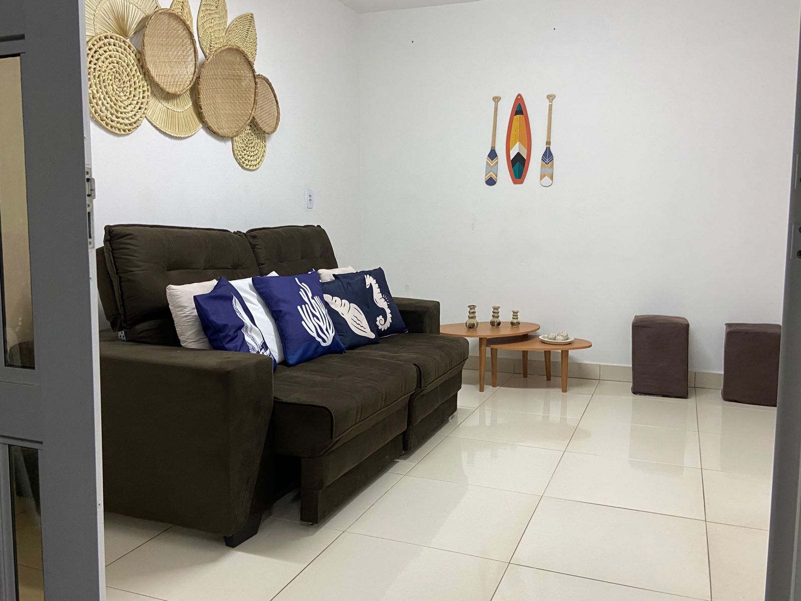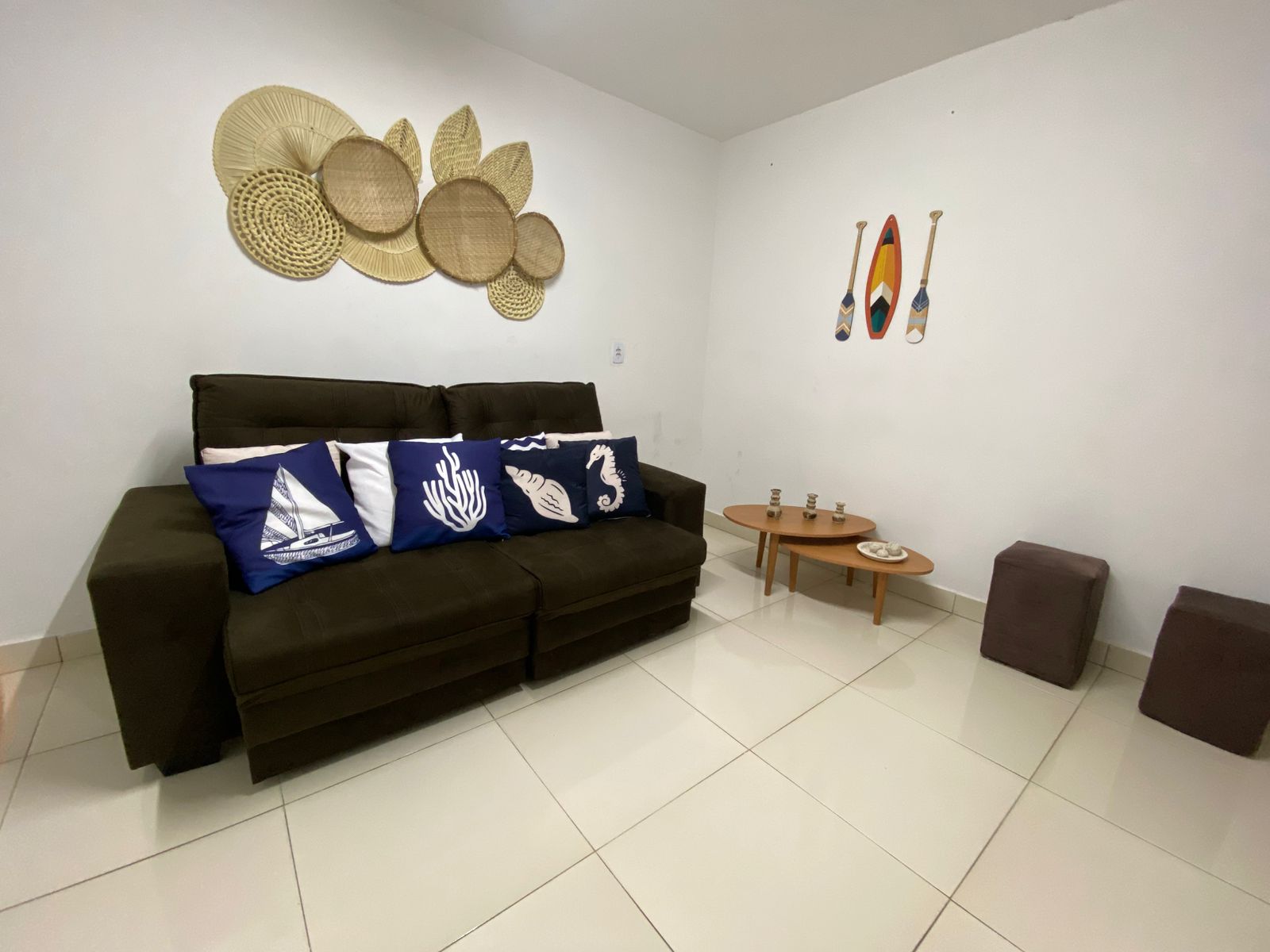 Sala de estar: 1 sofá-cama e 2 poofs.