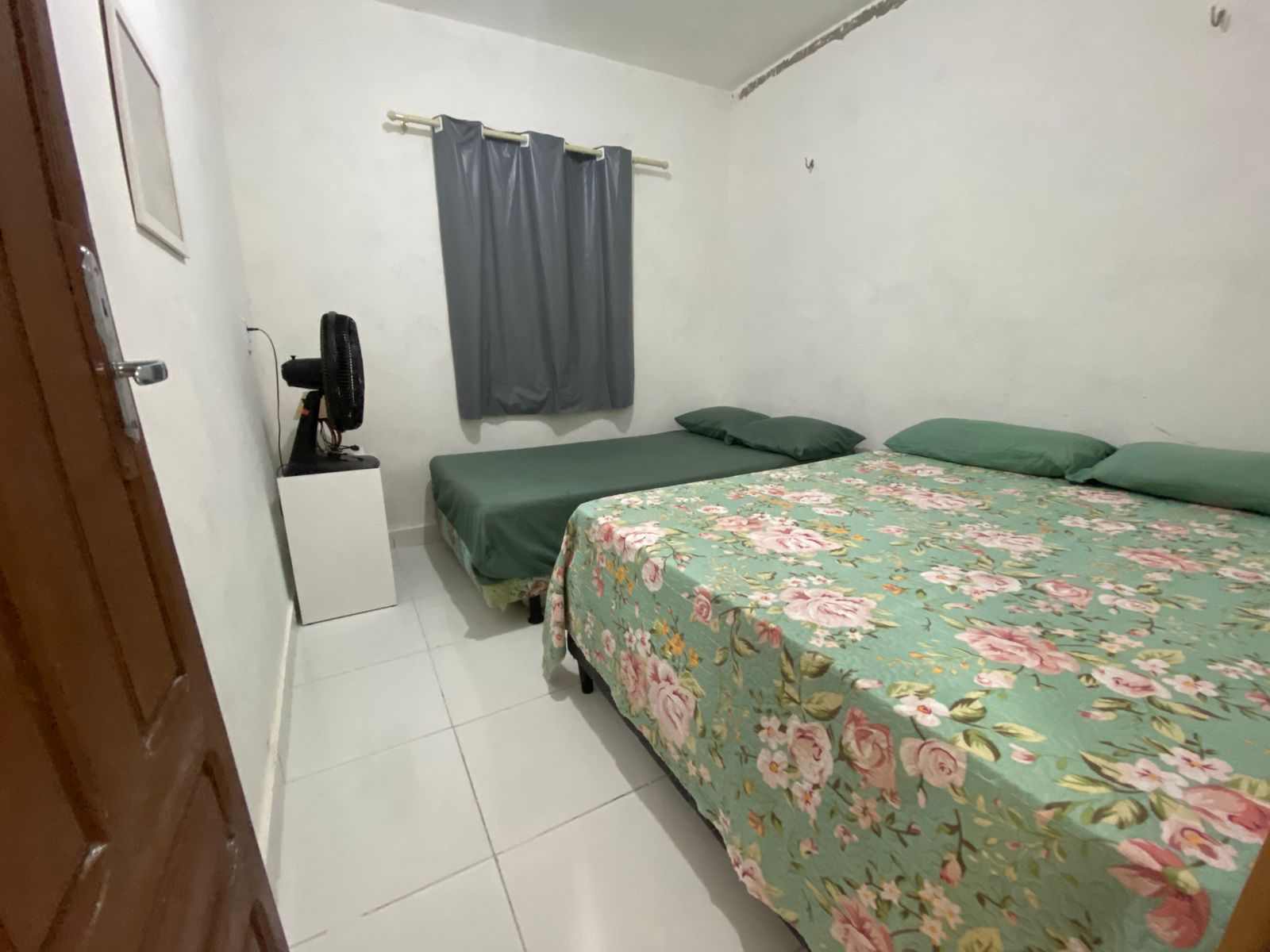 Quarto 3 – uma cama de casal, uma cama de solteiro e um par de armadores de rede.