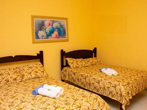 Quarto triplo: uma cama de casal, uma cama de solteiro, ar condicionado split, frigobar, wifi e banheiro privativo;